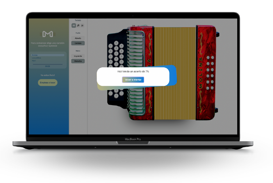 Simulador de acordeón que evalúa a los estudiantes según el número de aciertos